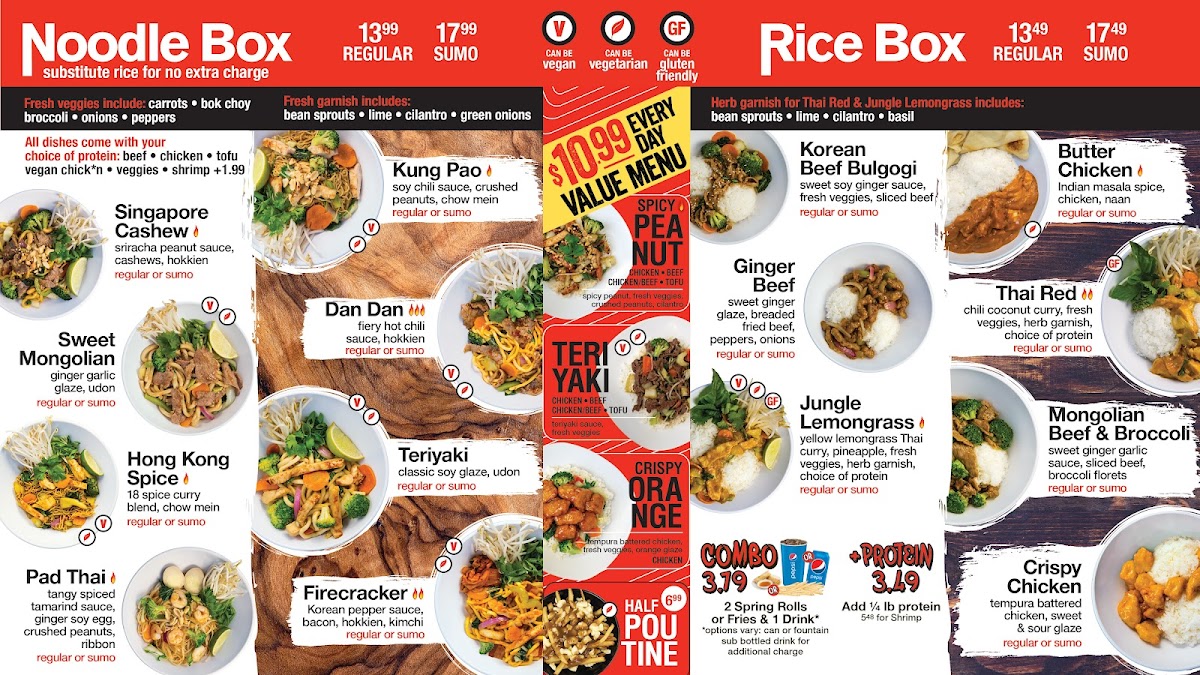 Absolutely loved my experience at Wok Box & Chubbs on Macleod Trail! The food was fresh, flavourful, and served hot—exactly what you'd want from a great Asian fusion spot. I ordered Dan Dan hokkien noodles and they were perfectly cooked and generously portioned. The service was fast and friendly, even during a busy dinner rush. Staff were welcoming and happy to make recommendations, which made the whole visit even better. The atmosphere is clean, casual, and comfortable—perfect for a quick bite or a relaxed meal with friends. Great value for the quality and quantity of food. Highly recommend if you're in the area and craving something delicious and satisfying. Definitely coming back!